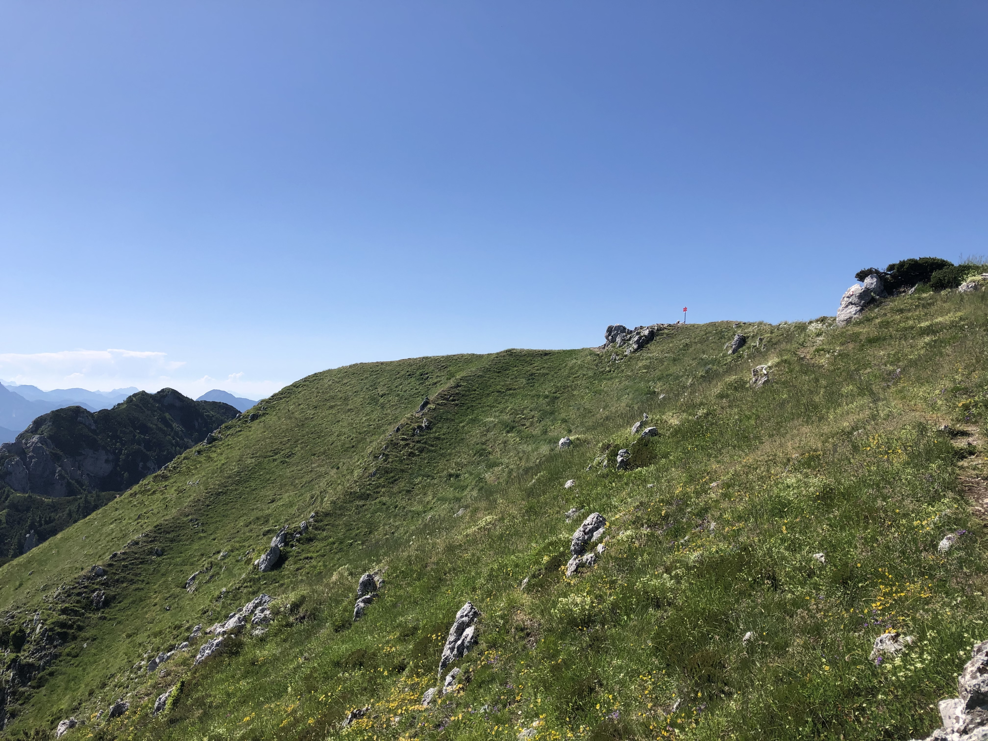 Ko smo se pričeli vzpenjati proti Olševi, smo bili na poti že več kot 8 ur, zato se je že malce pričela poznati utrujenost. Vseeno smo grizli kolena, in si kar malo olajšali, ko je z nabiranjem višine temperatura padala. Na nekje 1400 m se je občutno poznalo, kot bi zrak postal bolj svež za dihanje. Ko se dvignemo nad gozdno mejo, se zopet odpre razgled, kar nam da malo več energije za preostanek poti. Steza se vzpenja vedno bolj strmo, ter se na prehodu na Visoko peč za nekaj trenutkov poravna, preden spet pričnemo pridobivat višino, da dosežemo Govco, najvišji vrh Olševe.