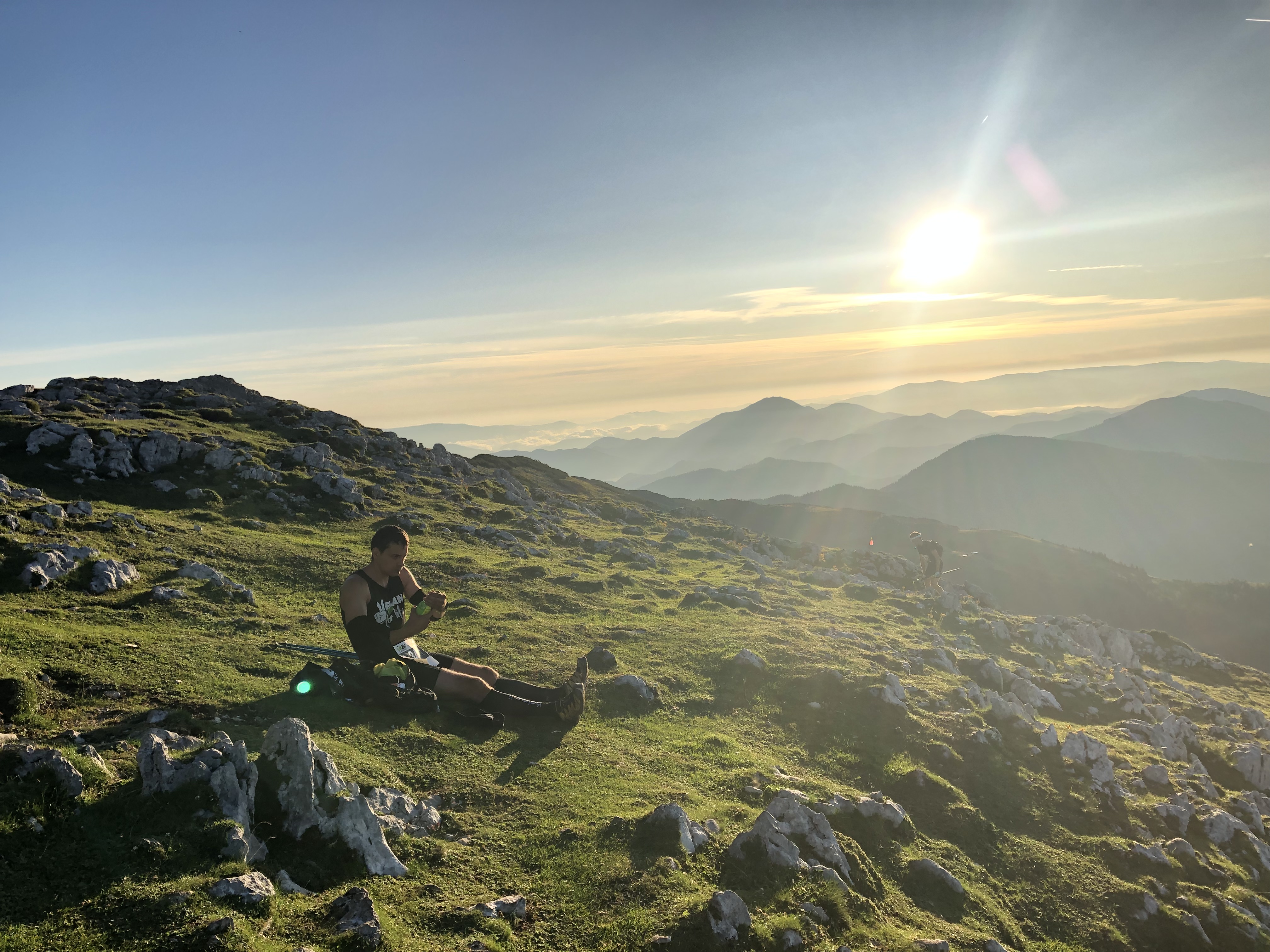 Naenkrat sem ostal v temi, ker so se baterije primarne luči izpraznile. Na glavi sem imel že pripravljeno rezervo, zato sem jo samo vklopil in se spet spustil v dir proti dolini. Pot je bila označena z odsevnimi zastavicami, zato je bilo navigiranje skozi noč otročje lahko. Po skoraj 4 urah na poti, prispem do kmetije Kumer, kjer me čaka Peter že z odprtim prtljažnikom, da me oskrbi. Naredim nekaj požirkov smoothija ter krenem dalje.