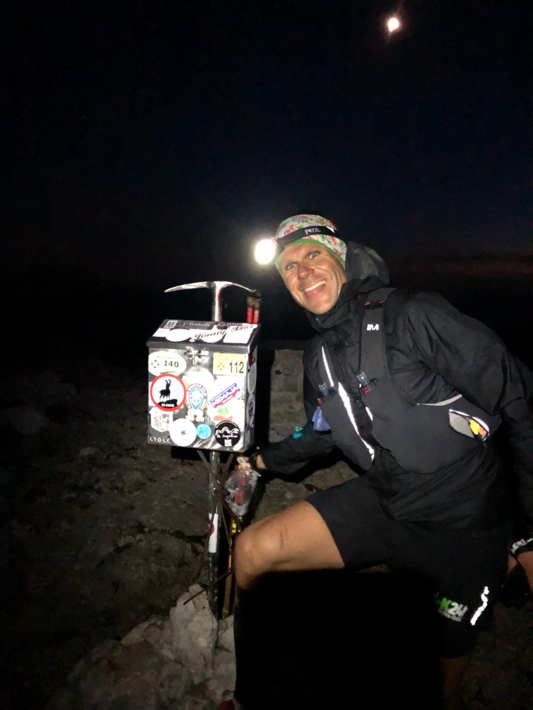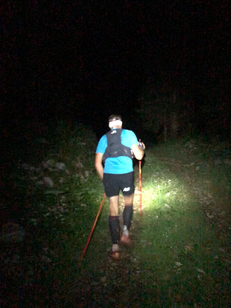 Kmalu se je začelo temniti in ko sva prispela do koče pod Peco, sva si nadela naglavne svetilke, dolila vodo in nadaljevala progi vrhu. Kmalu sva si nadela tudi vetrovke, saj je s pridobivanjem višine padala temperatura, pa tudi precej močno je pričelo pihati.