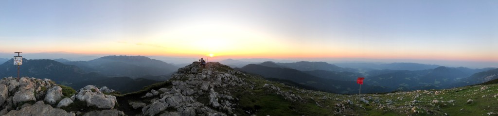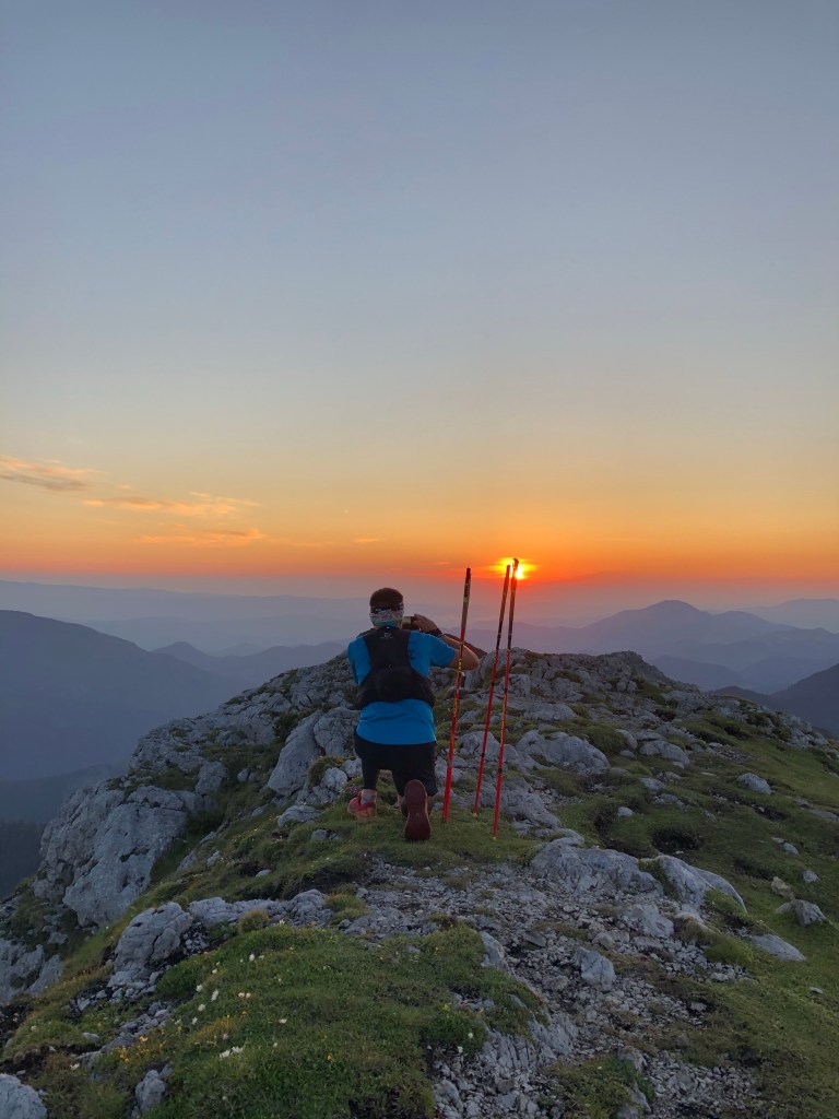 Ko sva dosegla vrh, se je ravno pričelo kazati sonce in ustvarilo čudovite prizore, ob katerih sva malo spočila noge. V daljavi naju je čakalo Smrekovško pogorje, ki se je prebujalo v jutranjem soncu.