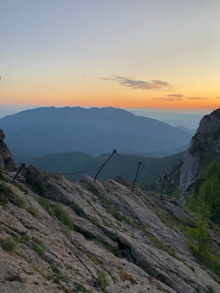 Od Grohata proti Raduhi sva izbrala težjo pot, da bi malce privarčevala na času, saj sva računla na sončni vzhod ko prispeva na vrh. Pot je res strma in zahtevna, zato nisem prepričan, če sva kaj prihranila. Je bilo pa lepo na tem delu opazovati, kako nastaja nov dan.