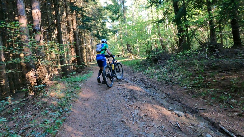 V nedeljo zgodaj zjutraj sva se dobila v Šaleku pri gasilskem domu in se odpravila. Nekaj je bilo tiščanja navzgor že na prvem delu, kjer so korenine in kamenje, ali pa je podlaga premehka, da bi bilo ekonomično poganjati pedala. Do pobočja Ramšakovega vrha sva se ravno ogrela in nadaljevala preko Visokega na vrh Paškega Kozjaka. Sledil je spust po enoslednih stezah do Hude luknje, ki je bil poezija za dušo. Ravno dovolj zahteven, da je hkrati še zabaven. Takšnih je na poti sledilo še kar nekaj. Tako sva potovala preko hribov in dolin skozi zeleno pokrajino. Nekaj krajših postankov za nalivanje vode ter okrepčilo in spet sva se peljala novim razgledom naproti.