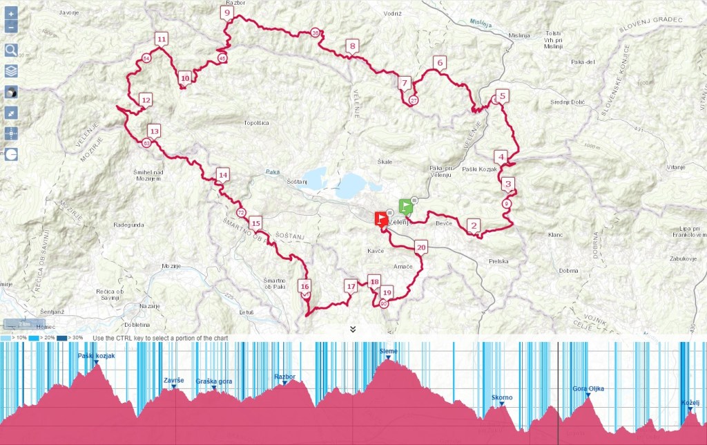 Vzpon na Goro Oljko sva raje odpeljala po cesti, kot da bi tiščala kolesa v strmino. Preostali del sva opravila po markiranih poteh. Tudi na Koželj sva nesla kolo. Tu je potekala debata, koliko bi bilo potrebno kolo nositi, če bi opravljala K24. Ta klub je baje zelo malo številčen. Morda pa nekoč le zbereva pogum.