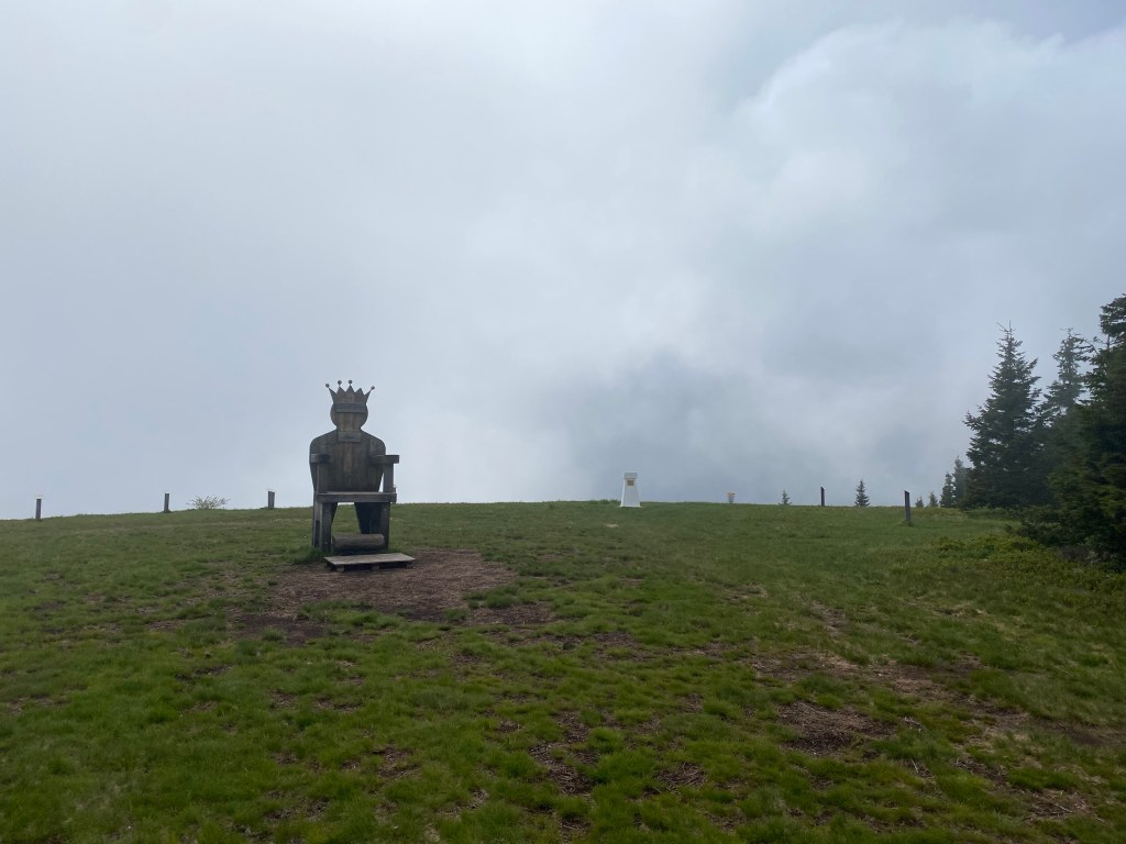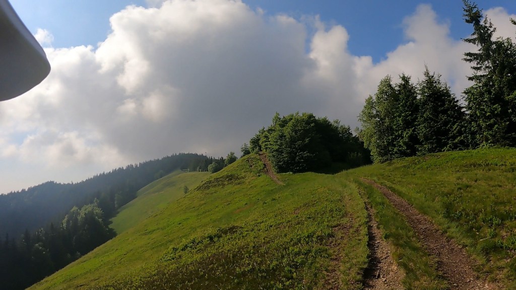 Ko dosežem najvišjo točko Pohorja, Črni vrh, se iz za oblakov kaže sonce, samo malo nižje pa je vse v megli. Vse do travnika malo pod Kremžarjevim vrhom je megla vztrajala, tam pa se je zopet pokazalo sonce, katerega sem bil prav vesel.