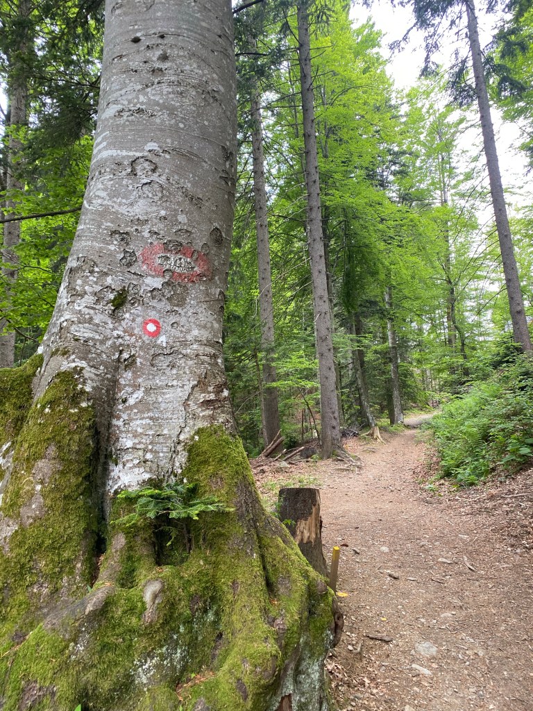 Malo čez 8 sem tako pričel pot. Na izhodišču sem srečal kar nekaj planincev, nisem pa vedel kaj imajo. Po slabi uri navkreber sta me dve prijazni gospe, ki sta sedeli pri manjši uti ogovorili, češ zakaj se ne ustavim pri njima. Najprej mi ni bilo čisto jasno zakaj, potem pa sta mi pojasnili, da je tukaj kontrolna točka Šumljakovega pohoda. Zato je bilo torej toliko planincev spodaj. Vzel sem bonbon, se zahvalil in se odpravil naprej po “totem našem brejgu”. Pri Belviju sem si prvič dotočil vodo. Tokrat sem imel s seboj samo eno pol litrsko posodo, saj je Pohorje bogato z vodo.