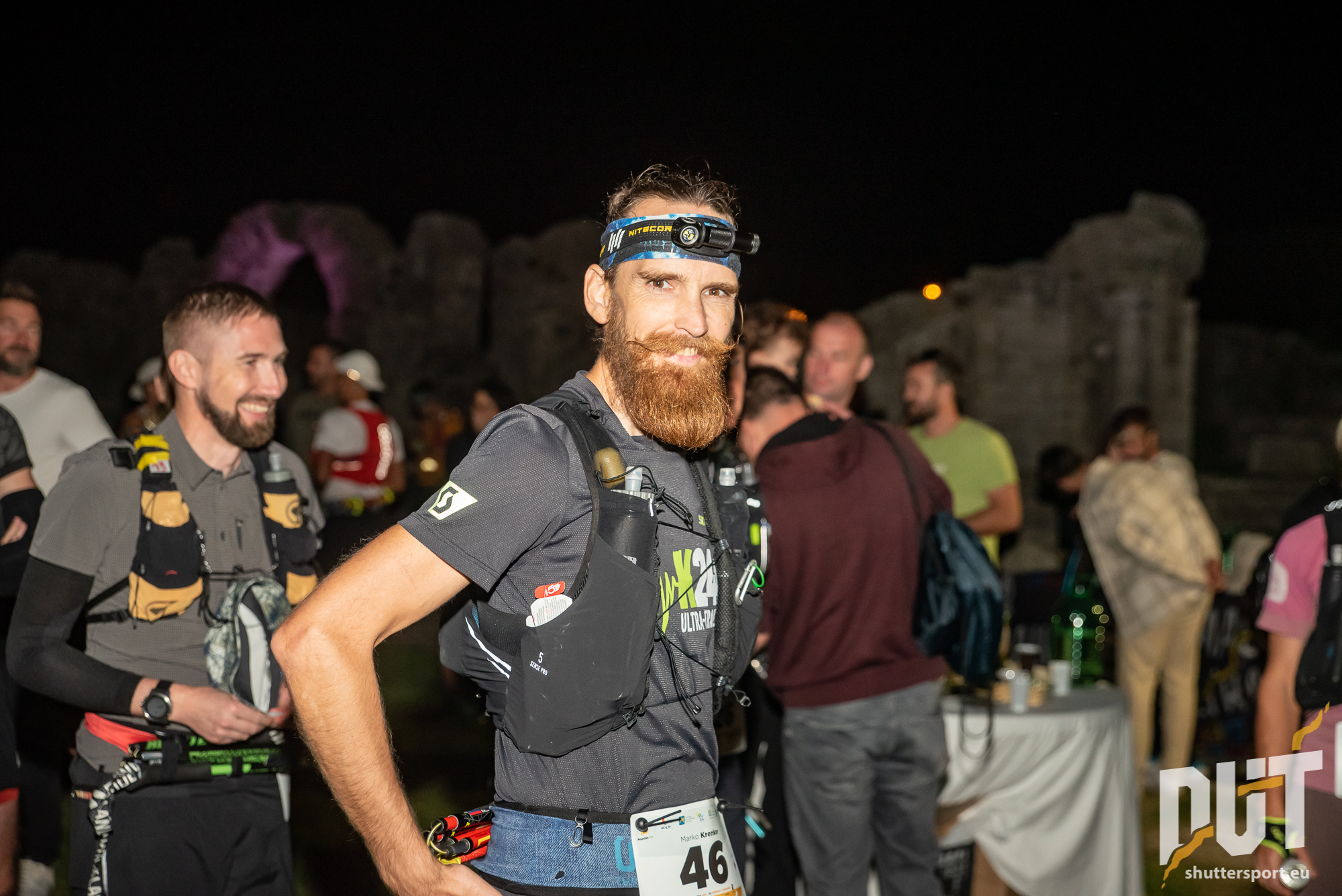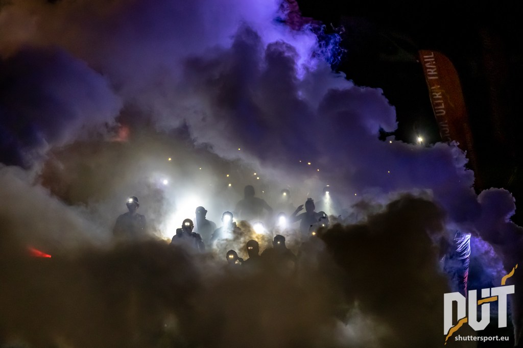 Poklepetal sem z ostalimi Slovenci na štartu in ura je je bila že kmalu devet, ko smo se odpravili na pot. Za štart so uprizorili posebno vzdušje z dimnimi efekti iz barvno osvetlitvijo. Pričel sem konzervativno, z zmernim tekom, v strmejše klance pa kmalu preklopil v strumno hojo. Gledal sem, da mi utrip ni presegel 140 udarcev na minuto in poskušal, da se ne oziram na ostale. Malo smo se dvigali, malo spuščali, preden smo prišli do prvega resnejšega vzpona s 450 višinci na rob planote Kozjak. Teren tukaj je res zahteven. Planinska pot, ki se zarašča, tako da kaj kmalu v temi izgubiš sled. Razjedene apnenčaste skale najrazličnejših velikosti, ki so tudi ostre, zato neke bajne hitrosti tukaj ni bilo.